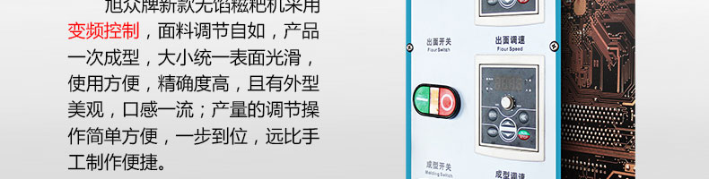 名稱XZ-5000A糍粑機 電源220/380V(見機器名牌) 功率2.5kw 產(chǎn)量0-5200個/小時 尺寸1550*980*1300mm 重量280kg 規(guī)格20-180克/個 其他