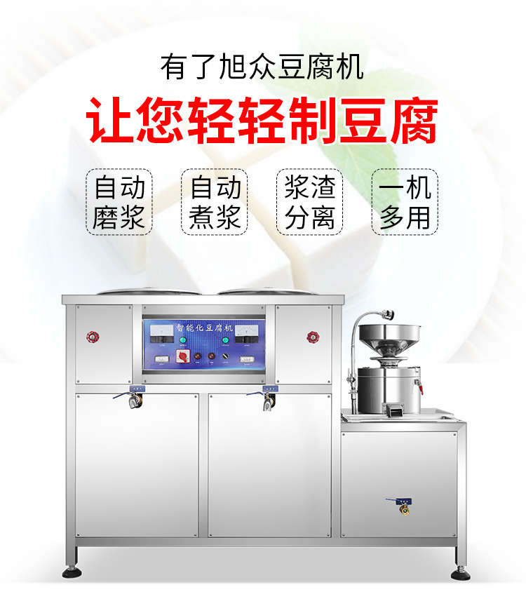 XZ-300型氣動(dòng)壓榨豆腐機(jī),智能豆腐豆?jié){機(jī),雙桶煮漿高效生產(chǎn)現(xiàn)磨現(xiàn)煮,漿渣分離快速出漿。機(jī)器運(yùn)行穩(wěn)定不銹鋼材質(zhì)打造,堅(jiān)固耐用,安全衛(wèi)生,時(shí)尚大方,易于清洗。