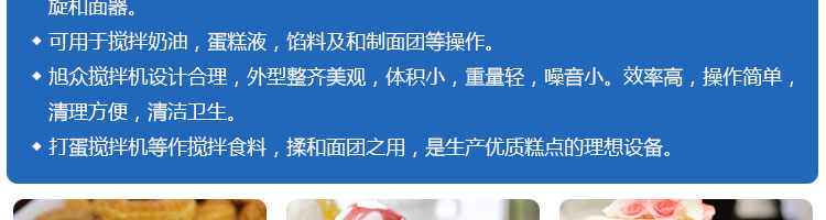 SZM10、15、20、25、30攪拌機系列,可用于攪拌奶油、蛋糕液、餡料及和制面團等操作。打蛋攪拌機等作攪拌食料、揉和面團之用,是生產優(yōu)質糕點的理想設備,適用于酒店、飯店、學校部門、面包屋以及食品廠家。