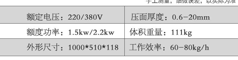 名稱60豪花型壓面面條機 電源220/380v 功率1.5kw-2.2kw 產(chǎn)量60-80kg/h 尺寸1000*510*118mm 重量111kg 規(guī)格 其他