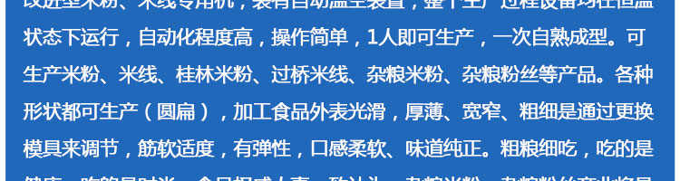 SZ-60不銹鋼米粉機(jī),可生產(chǎn)米粉、米線、桂林米粉、過橋米線、年糕、糍粑等產(chǎn)品。各種形狀都可生產(chǎn)(圓、扁),加工食品外表光滑,厚薄、寬窄、粗細(xì)均勻可調(diào),筋軟適度,有彈性,口感柔軟、味道純正。