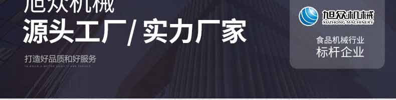 廣州旭眾食品機(jī)械有限公司是一家集科研開發(fā),生產(chǎn)設(shè)計,營銷服務(wù)為一體的現(xiàn)代化生產(chǎn)企業(yè)。現(xiàn)代化生產(chǎn)車間,精湛制造技術(shù),所產(chǎn)機(jī)械歷經(jīng)市場重重考驗,不斷贏得海內(nèi)外客戶的贊譽(yù)。