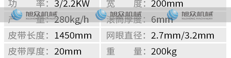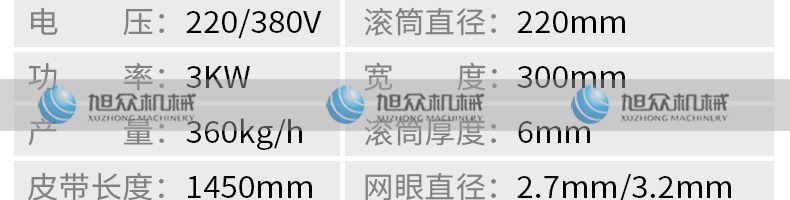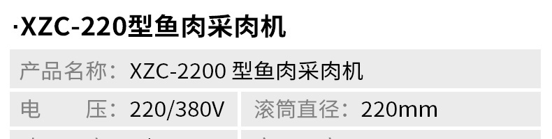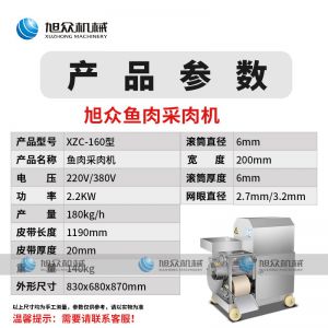 名稱XZC-160型魚肉采肉機 電源220/380V 功率2.2KW 產(chǎn)量聯(lián)系銷售員 尺寸830X680X870mm 重量140kg 規(guī)格聯(lián)系銷售員 其他