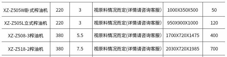 名稱立式50榨油機 電源220/380V(見機器名牌) 功率3~18.5KW 產(chǎn)量 尺寸下拉見產(chǎn)品參數(shù)表 重量 規(guī)格 其他